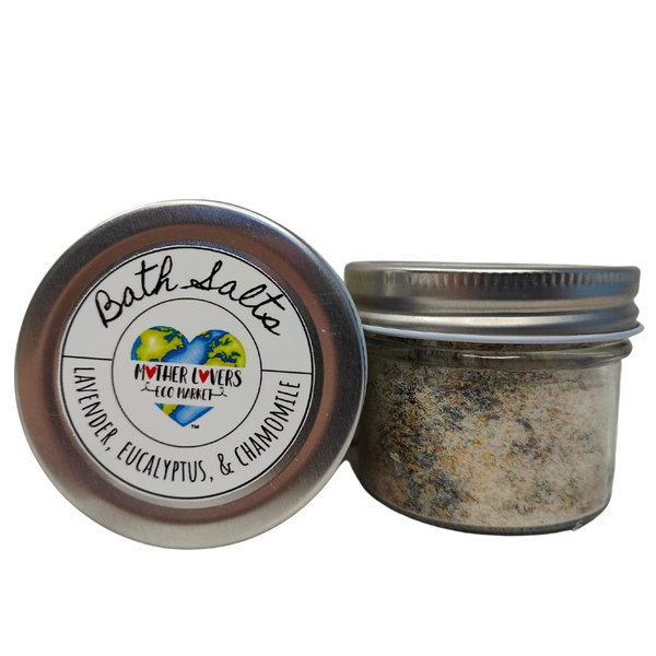 Make our AWARD WINNING small batch homemade MOTHER LOVIN Bath Salts your new go-to for all of your bathing & relaxation needs! Looking for the perfect ZERO WASTE product to help you relax, moisten that skin & leave it smelling HEAVENLY in the process? Tired of bath salts that over-dry the skin or come packaged in plastic? Our all natural & organic MOTHER LOVIN Bath Salts are perfectly formulated to provide premium performance without sacrificing the health of your body or the health of our beautiful Mother Earth. Our MOTHER LOVIN homemade small batch bath salts are always all natural, organic, non-GMO, VEGAN, cruelty free, & eco Friendly. Ingredients: Non-GMO Epsom Salts, Himalayan Pink Salt, Non-GMO Baking Soda, Organic Lavender Buds, Organic Chamomile Buds, Natural Lavender/Eucalyptus Essential Oils. 8 oz. sold in glass mason jars. We offset carbon emissions with each purchase & our HOME packaging is always sustainable :)